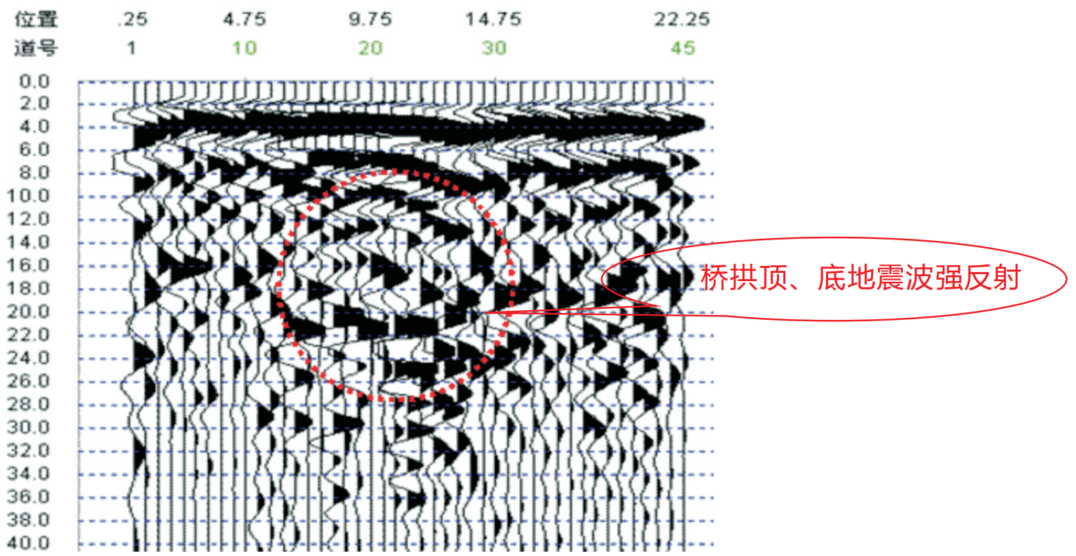 龍鱗宮拱橋超磁震源單點(diǎn)反射波形圖