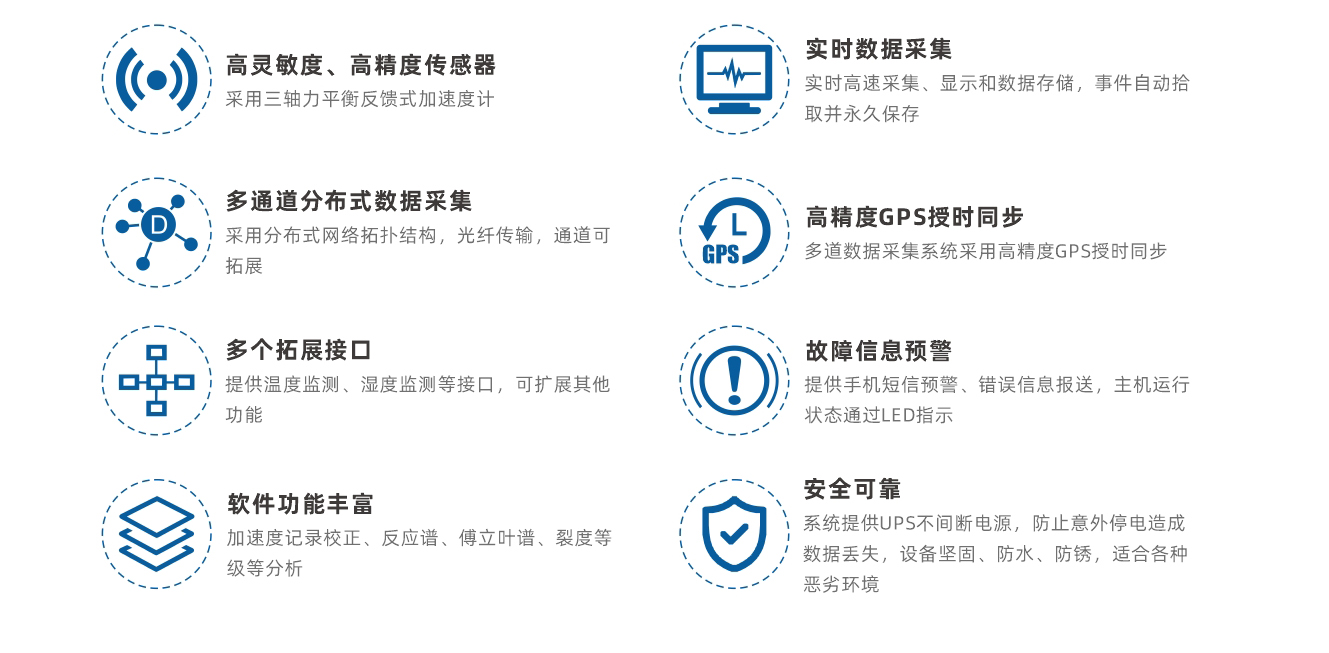 強(qiáng)地震發(fā)生時(shí)往往造成大量人員傷亡和巨額財(cái)產(chǎn)損失,強(qiáng)震監(jiān)測(cè)預(yù)警,強(qiáng)地面運(yùn)動(dòng)特性和工程結(jié)構(gòu)抗震特性研究及結(jié)構(gòu)抗震設(shè)計(jì)至關(guān)重要。我公司自主研發(fā)的IHSES強(qiáng)震監(jiān)測(cè)系統(tǒng)主要由傳感器、采集站、工控主機(jī)、記錄軟件及事件分析軟件組成。系統(tǒng)具有高靈敏度、低自身噪音、高保真度、寬動(dòng)態(tài)范圍、智能化程度高等特點(diǎn),廣泛應(yīng)用于水電工程大壩安全強(qiáng)震監(jiān)測(cè)、城市規(guī)劃與建設(shè)、抗震設(shè)防等領(lǐng)域。