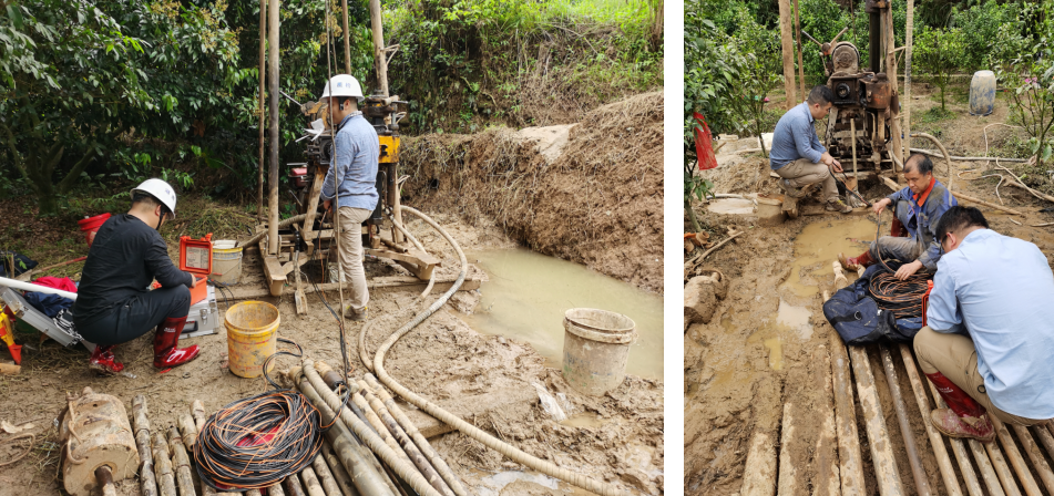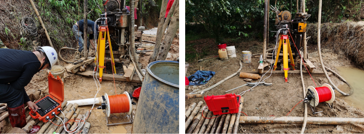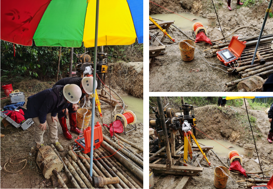 2020年4月8日-10日,湖南奧成科技有限公司HX-JD-04B三維高清智能鉆孔電視成像儀、HX-SY02B非金屬聲波儀等設(shè)備應(yīng)用于廣西玉林北部灣水資源配置工程前期勘探。